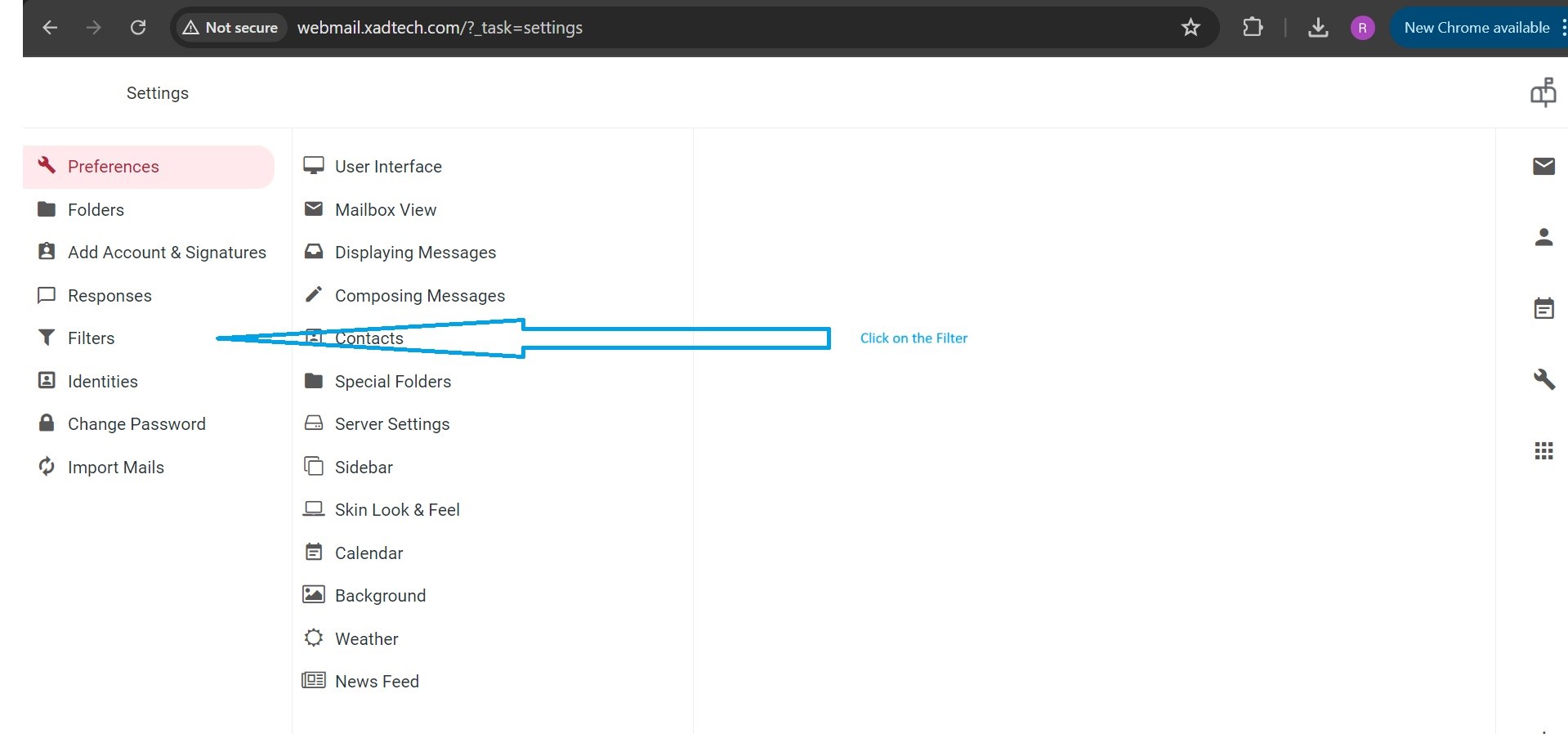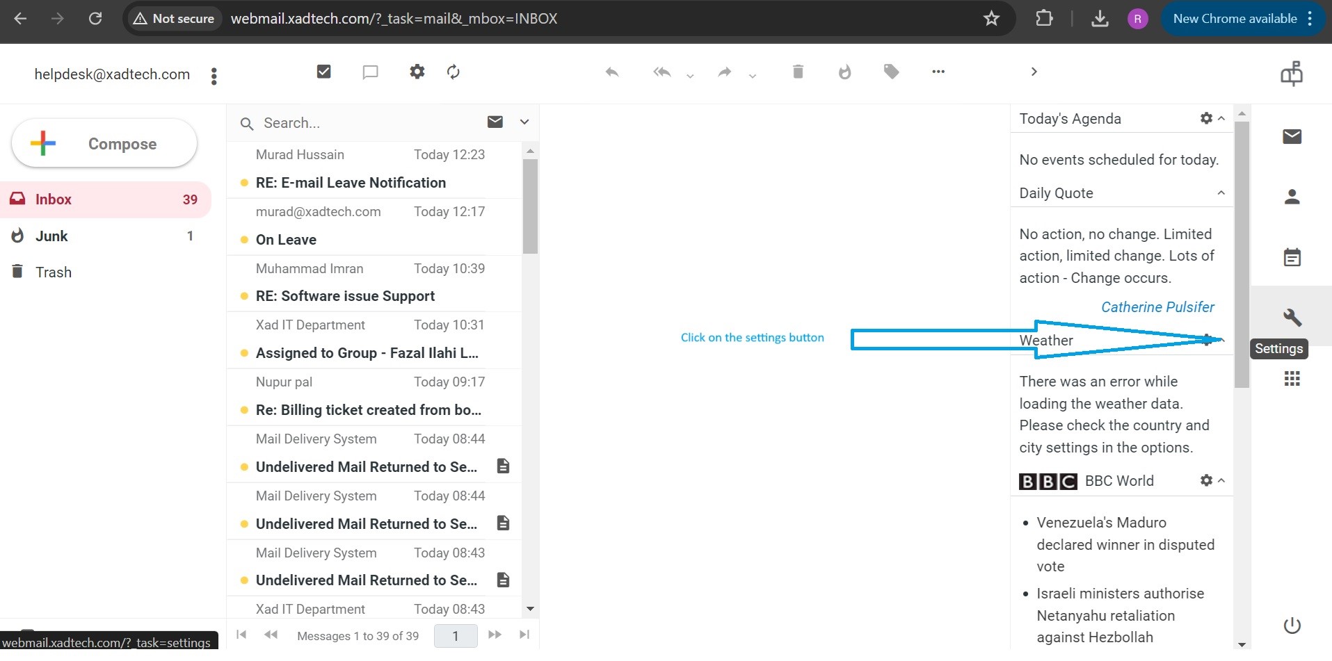 3. When you enter the email mail box. Look for the settings button as mentioned in the picture below.